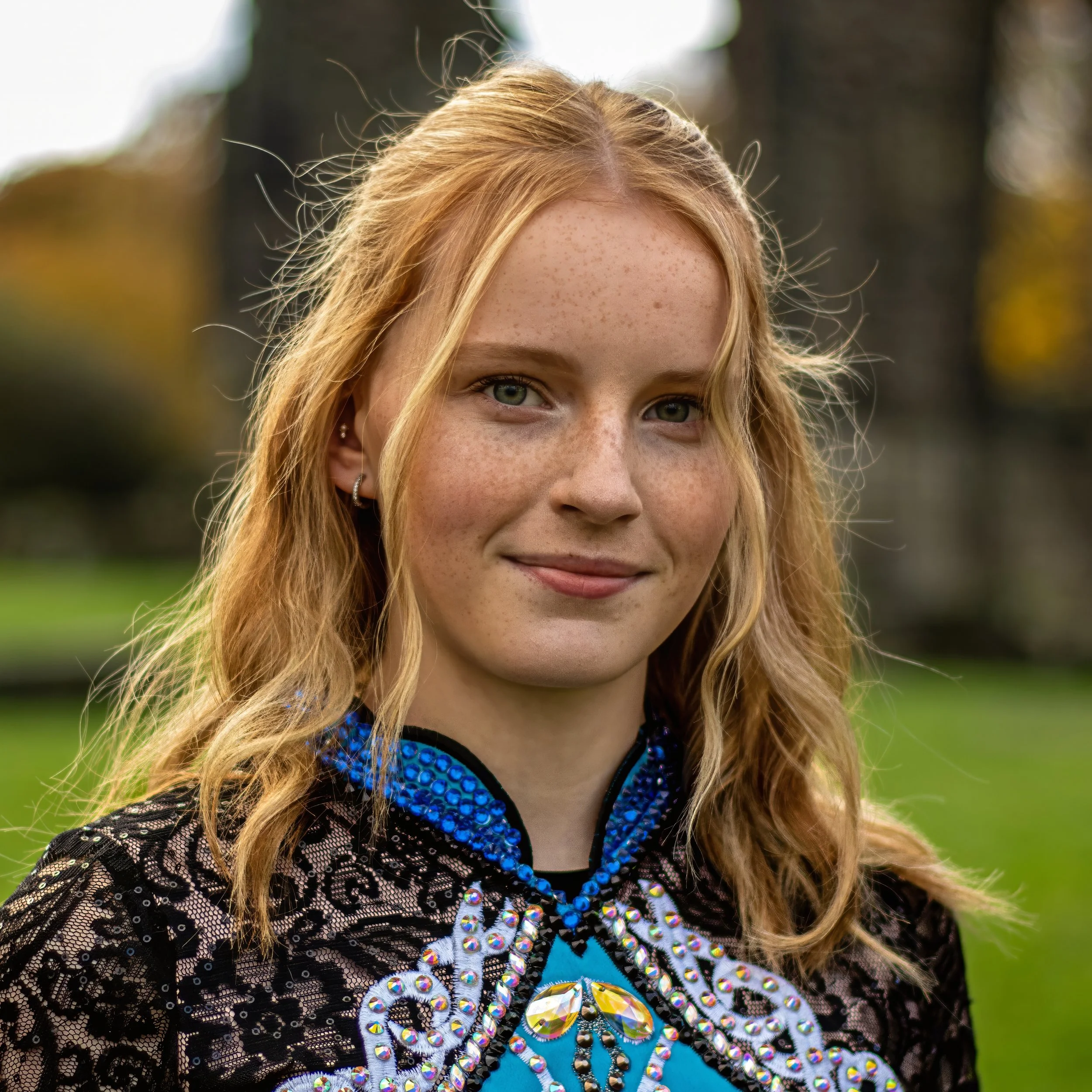 Natalie began her Irish dancing journey at the age of seven, after making two previous attempts to start classes. Once she found her footing, she quickly developed a strong passion for Irish dance and committed fully to her training.